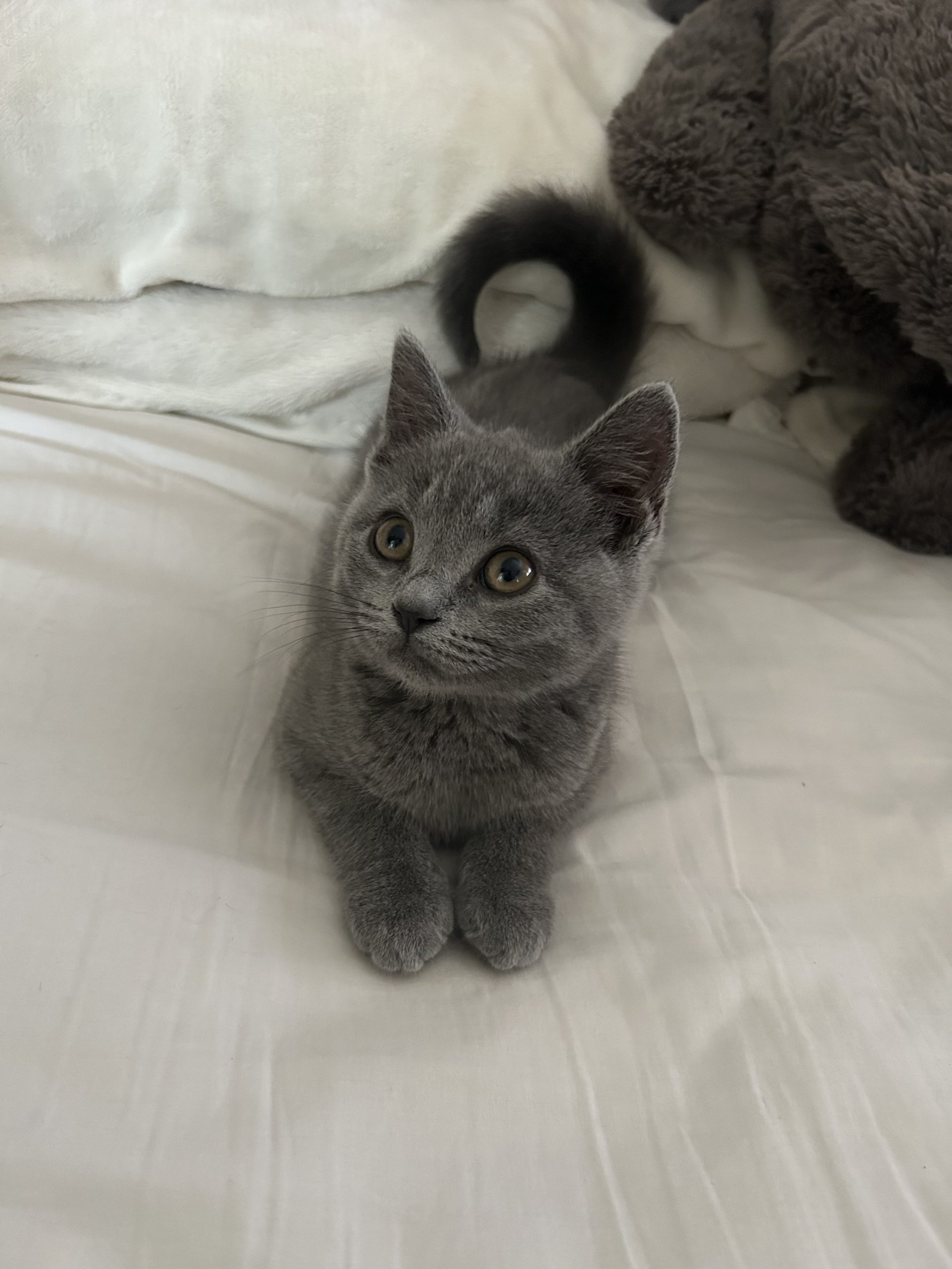 Chia is also a British Short hair cat! This is a photo of her when she was a baby but her eyes have since become a lot more birght and yellow over time! Chia is a lot smaller than Nando and is 1 years old – we dont think she will get any bigger now! Chia isn’t the most socialable cat, she spends a LOT of time asleep on our bed or on THIS cat tree we brought from Amazon.